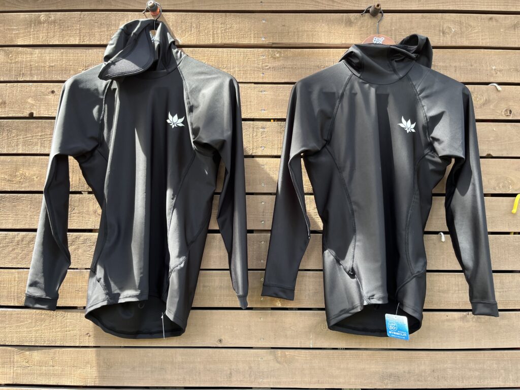 シュノーケリングとフィン、それに大活躍なaxxeclassicのフード付きラッシュガードを装着!